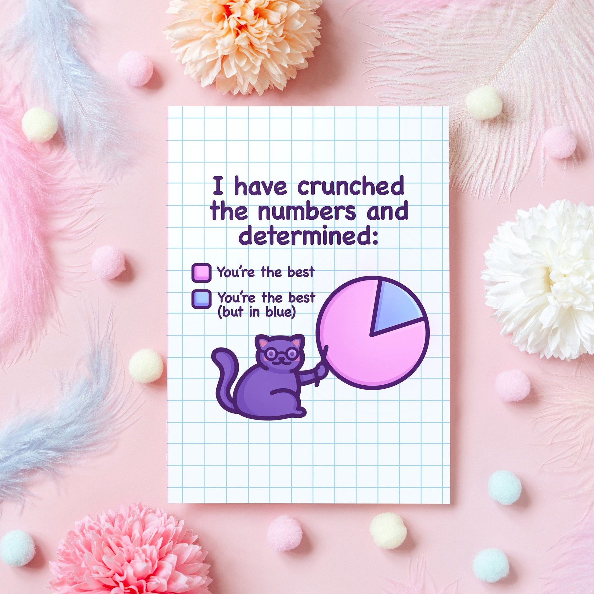 I have crunched the numbers and determined - you're the best! This nerdy cat card is the cutest way to express love to your husband, wife, partner, or anyone whose love language is cat memes.