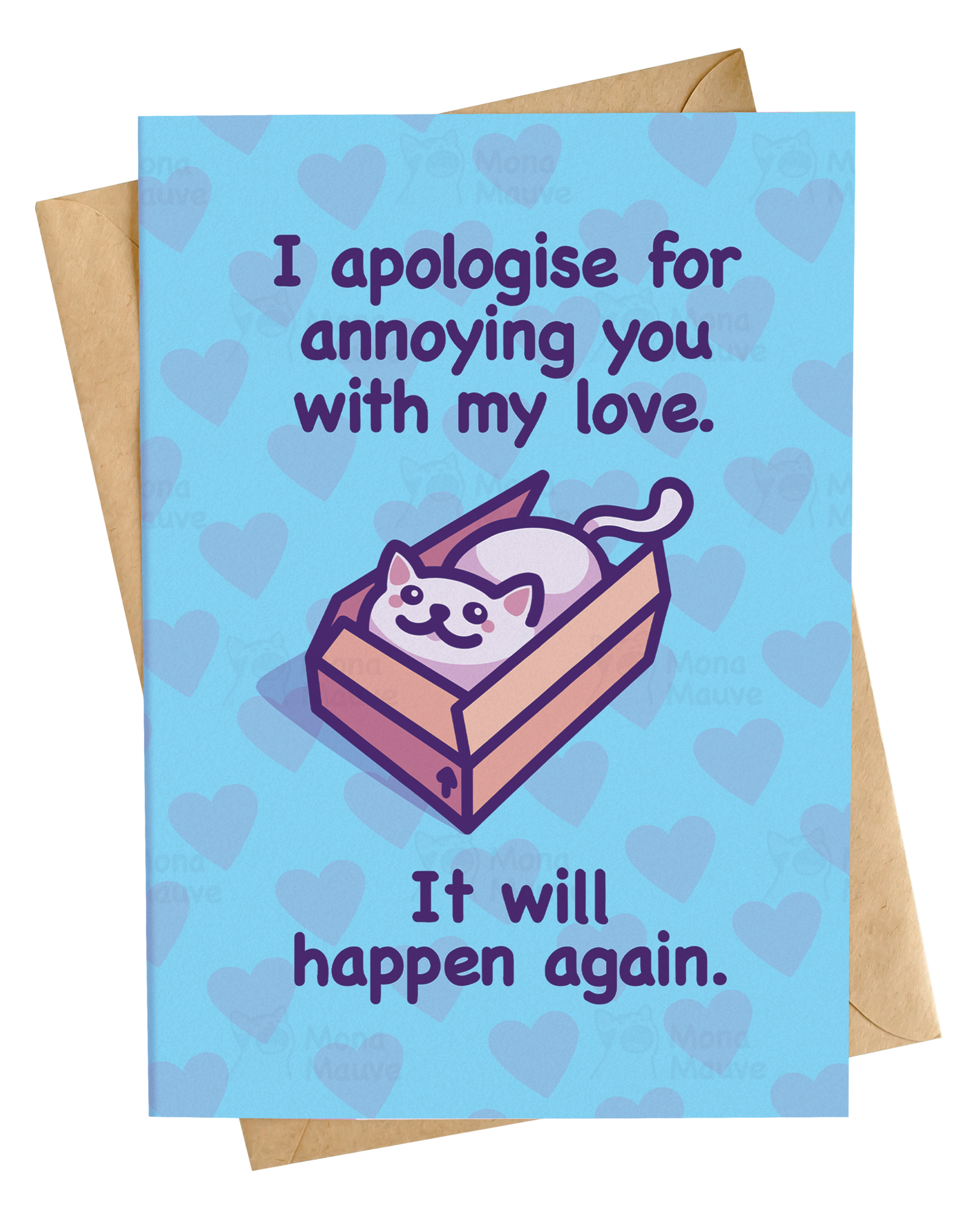 I apologise for annoying you with my love. It will happen again. A funny and cute anniversary or 'just because' card to make your loved one smile!
